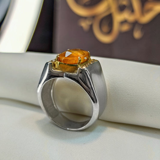 تخفيضات لفترة محدودةخاتم رجالي بتصميم إيراني فضة استرليني 925 - حجر زفير إفريقي أصفر طبيعي