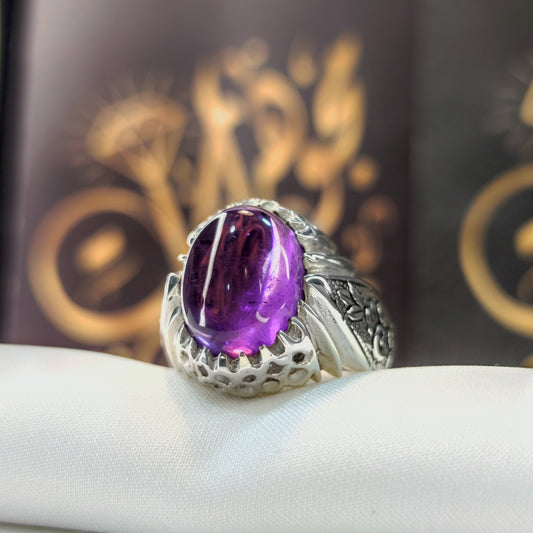 خاتم فضة 925 جوهرة أماتيست – تصميم إيراني فاخر