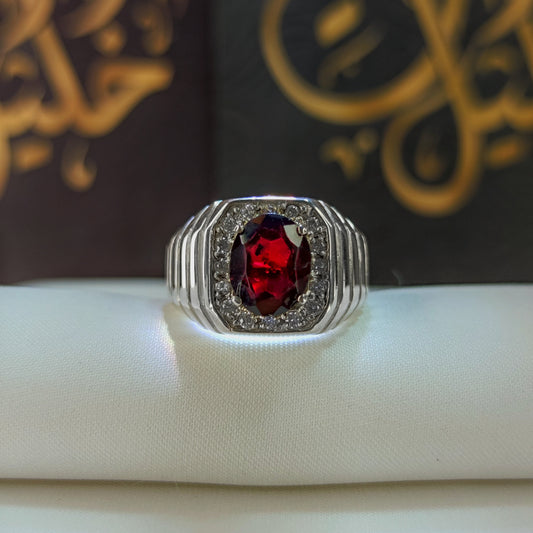 خاتم فضة ملكي مرصّع بالياقوت الأحمر والألماس الحر – إصدار محدود جدًا