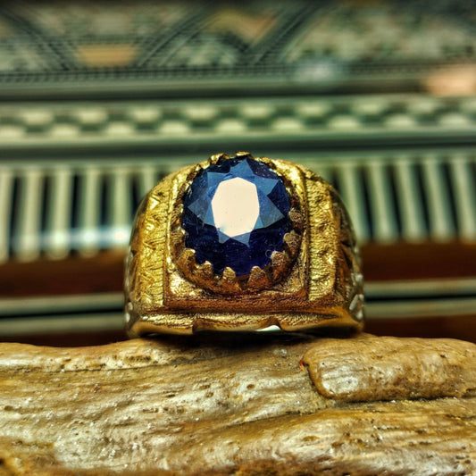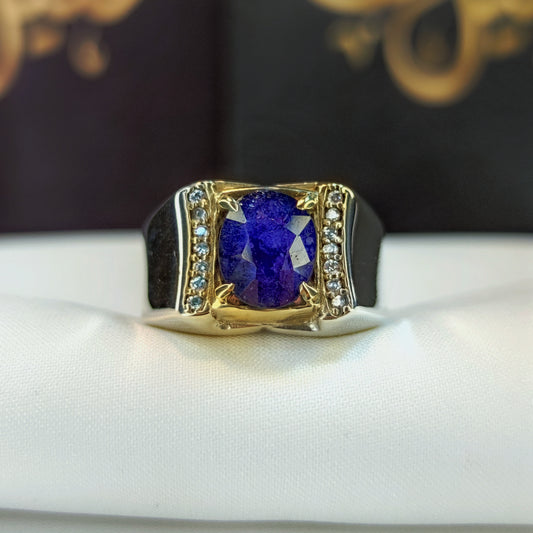 خاتم رجالي بجوهرة من الزفير الإفريقي الأزرق - فضة استرليني 925